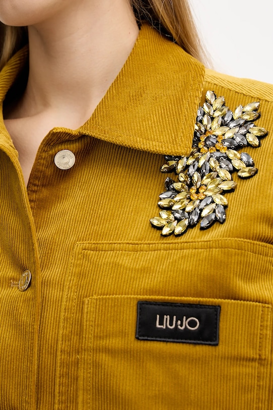 Куртка из коллекции Liu Jo. Эта модель с лёгким утеплителем выполнена из вельвета. Изготовлена из исключительно комфортного материала с высоким содержанием хлопка. - Простой дизайн, не стесняющий движений. - Удобная застежка на кнопки позволяет легко надевать и снимать. - Манжеты на пуговицах. - Модель с воротником. - Три накладных кармана спереди. - Модель с декоративной аппликацией. - Легкоутепленная модель с подкладкой. - Длина рукава: 57 см. - Длина: 61 см. - Ширина под мышками: 55 см. - Размеры указаны для размера: 38.