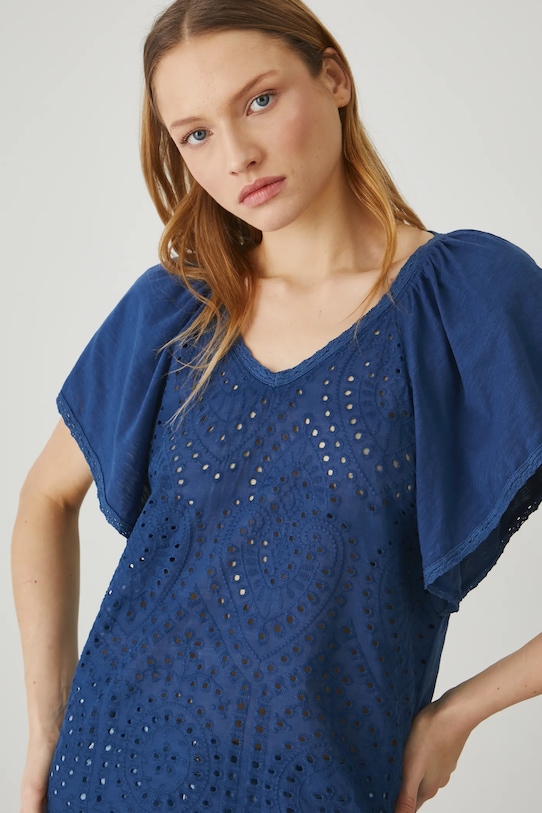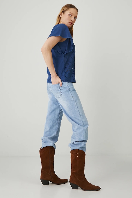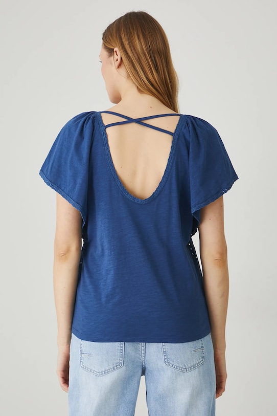Футболка из коллекции «Medicine». Изготовлена из хлопка. - Обычная посадка. - Короткие рукава реглан. - Декоративные оборки на рукавах. - Острый вырез. - Декоративный вырез на спине. - Декоративная отделка. - Модель с декоративной вышивкой. - Трикотажное полотно толстого переплетения с неровной текстурой. - Длина: 62 см. - Ширина груди: 49 см. - Размеры указаны для размера: S.