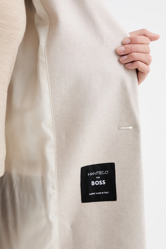 Эта куртка BOSS изготовлена из гладкой ткани. Высокие терморегулирующие свойства шерсти сохраняют тепло в холод и прохладу в жару. Manteco - итальянский бренд, известный своей текстильной продукцией, в частности, переработанной шерстью. Компания уделяет первостепенное внимание устойчивому развитию, сочетая современные технологии с традиционными текстильными техниками. Материалы Manteco используются в индустрии моды и текстиля, сочетая качество с экологичностью. - Простой дизайн, не стесняющий движений. - Модель на подкладке. - В плечах вшиты подкладки. - Двубортный пиджак с застежкой на пуговицы. - Модель с карманами, декорированными клапанами. - Тонкая, неэластичная ткань. - Длина рукава: 61 см. - Длина: 80 см. - Ширина под мышками: 47 см. - Ширина плеч: 37 см. - Размеры указаны для размера: 36.