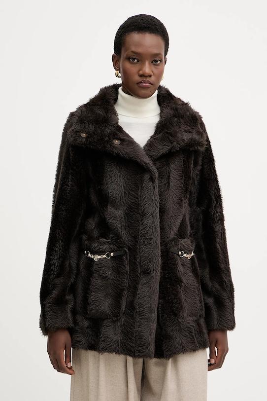 Пальто из коллекции Fracomina. Модель без подкладки выполнена из искусственного меха. - Простой дизайн, не стесняющий движений. - Однобортный, застегивается на кнопки. - Неутепленная модель с подкладкой. - Накладные карманы. - Длина рукава: 67 см. - Длина: 71 см. - Ширина под мышками: 53 см. - Ширина плеч: 40 см. - Размеры указаны для размера: S.