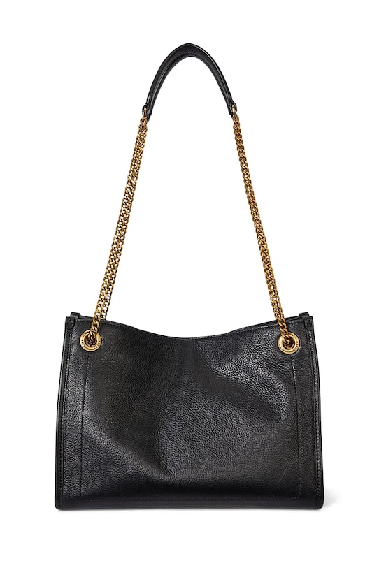 Сумка среднего размера из коллекции Lauren Ralph Lauren. Модель на молнии, выполнена из натуральной кожи. - Магнитная застежка. - Три внутренних кармана: один на молнии, два накладных. - Модель на подкладке. - Не подходит для формата А4. - Сумка для ношения в руке или на плече. - Входящий в комплект тканевый чехол защищает изделие от пыли. - Глубина: 11,5 см. - Высота: 21,5 см. - Ширина у основания: 28,5 см.