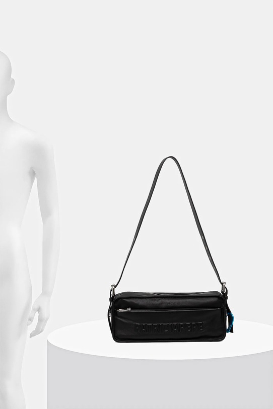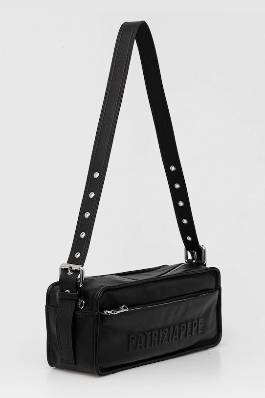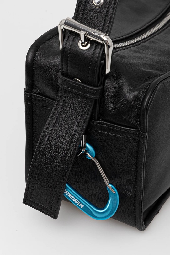 Сумка среднего размера из коллекции Patrizia Pepe. Модель на молнии, выполнена из экокожи. - Застежка-молния. - Карман на молнии спереди. - Три внутренних кармана: один на молнии, два накладных. - Модель на подкладке. - Имеет карабин, к которому можно прикрепить ключи. - Несъемный, регулируемый ремешок. - Входящий в комплект тканевый чехол защищает изделие от пыли. - Минимальная длина ремешка: 61 см. - Максимальная длина ремня: 102 см. - Глубина: 12 см. - Высота: 15 см. - Ширина у основания: 36 см.