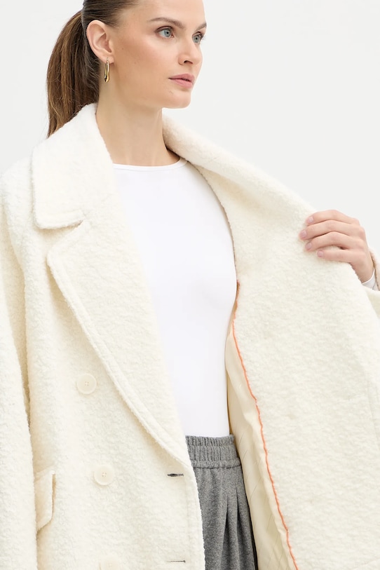 Короткое пальто из коллекции BOSS Orange. Модель без подкладки выполнена из гладкого материала. Высокие терморегулирующие свойства шерсти позволяют согреться в холод и охладиться в жару. - Изделия линейки BETTER BOSS не менее чем на 60% изготовлены из материалов, полученных более экологичным способом. - Большой размер. - Закругленные лацканы. - Неутепленная модель с подкладкой. - Модель с карманами, декорированными клапанами. - Двубортный пиджак с застежкой на пуговицы. - Тонкий материал. - Рукава реглан благодаря своей конструкции обеспечивают большую свободу движений. - Длина рукава (от воротника): 78 см. - Длина: 67 см. - Ширина под мышками: 60 см. - Размеры указаны для размера: 36.