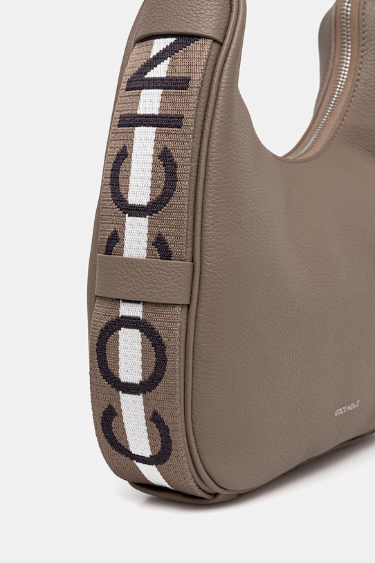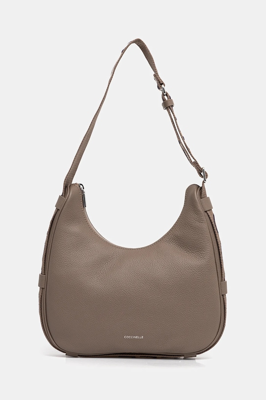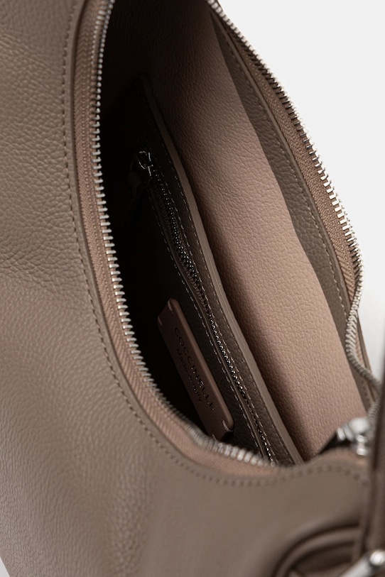 Небольшая сумочка из коллекции Coccinelle. Модель на молнии, выполнена из натуральной кожи. - Входящий в комплект тканевый чехол защищает изделие от пыли. - Не подходит для формата А4. - Отделение на молнии. - Имеет внутренние карманы, в том числе один на молнии. - Несъемный, регулируемый ремешок. - Глубина: 5 см. - Высота: 18,5 см. - Ширина у основания: 28 см. - Минимальная длина ремешка: 57 см. - Максимальная длина ремня: 70 см.