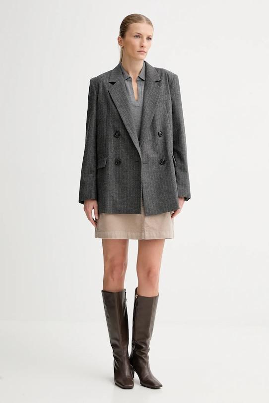 Эта куртка из коллекции Marc O'Polo выполнена из тонкой, неэластичной ткани. Модель выполнена из исключительно комфортного и высококачественного материала. - Этот продукт сертифицирован по стандарту ответственного производства шерсти (RWS). Материал содержит шерсть, полученную с ферм, имеющих независимую сертификацию на соответствие требованиям к благополучию животных и землепользованию. - Простой дизайн, не стесняющий движений. - Двубортный пиджак с застежкой на пуговицы. - Классические лацканы. - Модель на подкладке. - Модель с карманами, декорированными клапанами. - Длина рукава: 61 см. - Длина: 70 см. - Ширина под мышками: 53 см. - Ширина плеч: 43 см. - Размеры указаны для размера: 36.