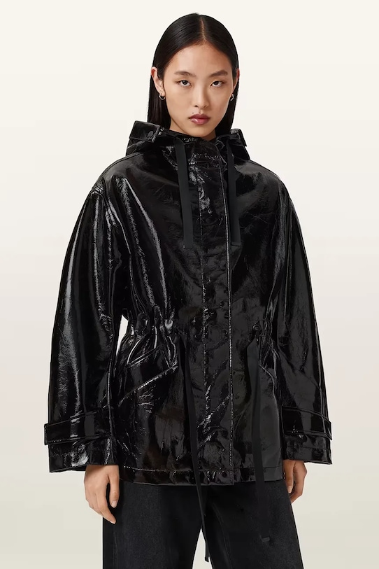 Куртка из коллекции AllSaints. Эта неутеплённая модель выполнена из гладкого материала. - Данное изделие частично изготовлено из переработанного полиэстера. - Простой дизайн, не стесняющий движений. - Регулируемая талия со шнурками для индивидуальной посадки. - Поднятый воротник и несъемный капюшон обеспечивают дополнительную защиту от холода. - Застежка-молния и кнопки.