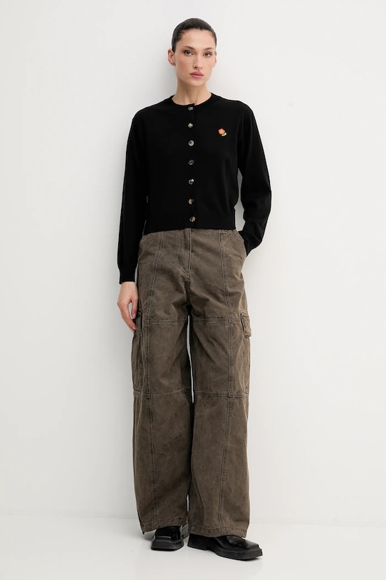 Этот кардиган из коллекции Kenzo выполнен из тонкого трикотажа. Высокие терморегулирующие свойства шерсти позволяют согреться в холод и охладиться в жару. - Простой дизайн, не стесняющий движений. - Удобная застежка на кнопки позволяет легко надевать и снимать. - Крой рукава со спущенной линией плеча не ограничивает подвижность. - Рукава и низ изделия отделаны манжетами для защиты от неблагоприятных погодных условий. - Модель с декоративной аппликацией. - Длина: 51 см. - Ширина под мышками: 49 см. - Размеры указаны для размера: M.