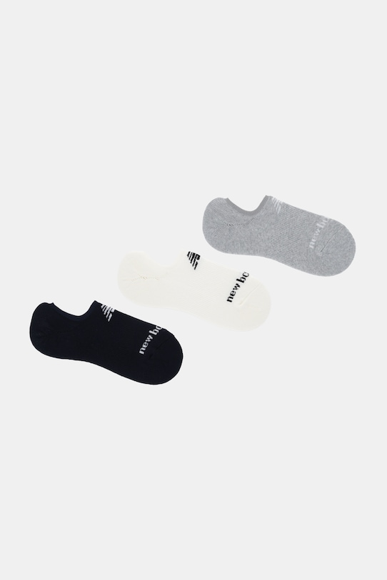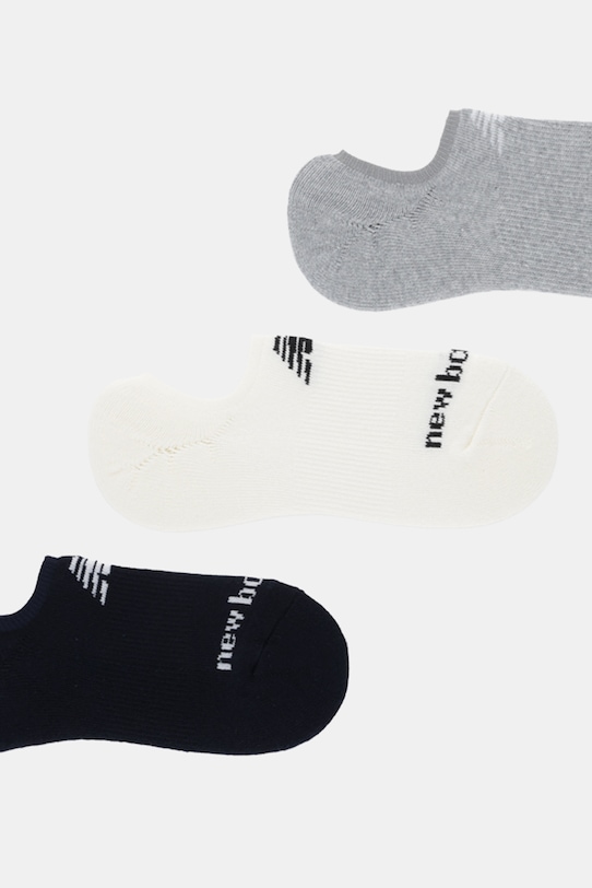 Короткие носки из коллекции New Balance. Изготовлены из эластичного материала. Комплект из трёх пар. Исключительно комфортный, дышащий материал с высоким содержанием хлопка. - Модель выполнена из мягкого, приятного для кожи трикотажа с высоким содержанием хлопка, который отличается исключительной воздухопроницаемостью, прочностью и отличными гигроскопичными свойствами. - Верхний край отделан шнурком, чтобы предотвратить скольжение во время занятий.