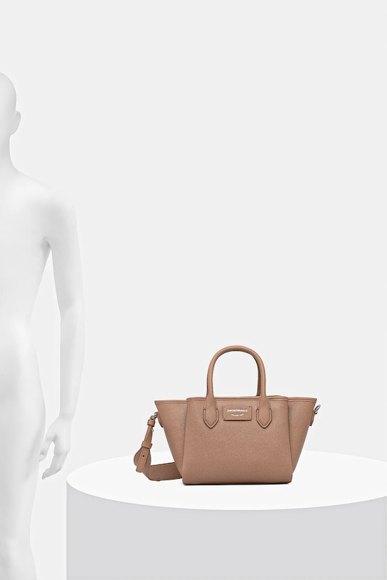 Небольшая сумочка из коллекции Emporio Armani. Модель на молнии, выполнена из экокожи. - Имеет три отделения: одно на магнитной застежке, два на молнии. - Модель без подкладки. - Внутренних карманов нет. - Сумка для ношения в руке или на плече. - Имеет ручки и съемный регулируемый ремень. - Не подходит для формата А4. - Входящий в комплект тканевый чехол защищает изделие от пыли. - Глубина: 12 см. - Высота: 16,5 см. - Ширина у основания: 20 см.