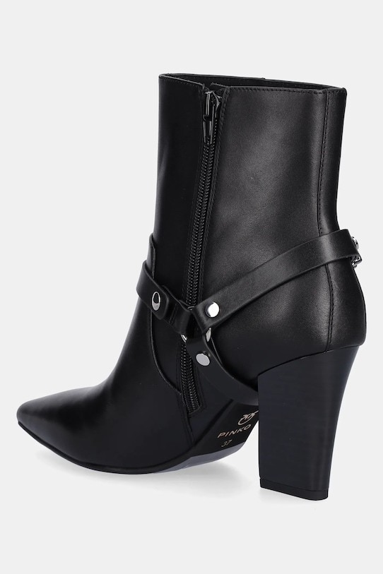 Ботильоны из коллекции Pinko, изготовленные из натуральной кожи. Модель оснащена прочной и износостойкой резиновой подошвой. - Входящий в комплект тканевый чехол защищает изделие от пыли. - Заостренный, жесткий нос. - Усиленный задник обеспечивает отличную поддержку лодыжки и пятки. - Модель с блочным каблуком. - Удобная застежка-молния позволяет легко надевать и снимать. - Модель с кожаной внутренней частью, которая удобна для стопы и предотвращает натирание, потертости и появление неприятного запаха. - Высота каблука: 8 см. - Длина вставки: 23 см. - Размеры указаны для размера: 37.