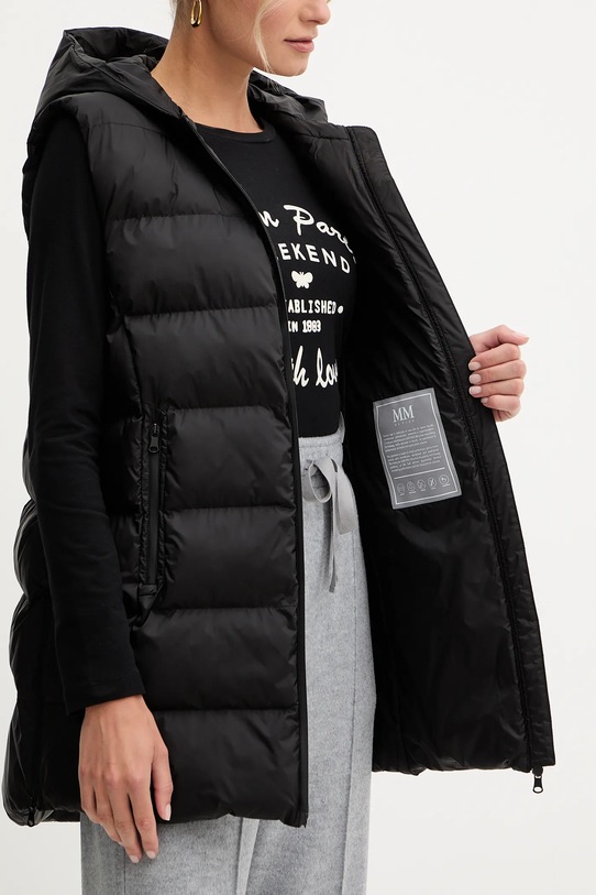 Жилет из коллекции ММ. Утеплённая модель из гладкого материала. - LuxePad - высококачественный утеплитель из переработанного сырья. Регенерированные отходы верблюжьей шерсти и шёлкового волокна, смешанные с переработанным полиэстером, создают тёплый наполнитель с теми же свойствами, что и традиционные утеплители, но при этом отвечающий принципам устойчивого развития. - Модель с повышенной водонепроницаемостью. - Простой дизайн, не стесняющий движений. - Застежка-молния. - Внешние карманы на молнии. - Поднятый воротник и несъемный капюшон обеспечивают дополнительную защиту от холода. - Лоскутное шитье. - Длина: 76 см. - Ширина под мышками: 56 см. - Размеры указаны для размера: 36.