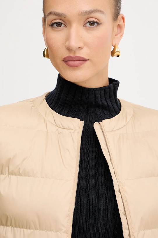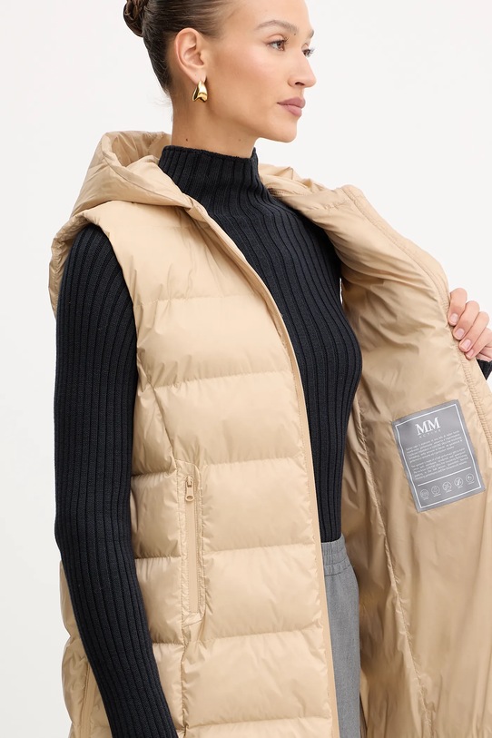 Жилет из коллекции ММ. Утеплённая модель из гладкого материала. - LuxePad - высококачественный утеплитель из переработанного сырья. Регенерированные отходы верблюжьей шерсти и шёлкового волокна, смешанные с переработанным полиэстером, создают тёплый наполнитель с теми же свойствами, что и традиционные утеплители, но при этом отвечающий принципам устойчивого развития. - Модель с повышенной водонепроницаемостью. - Простой дизайн, не стесняющий движений. - Застежка-молния. - Внешние карманы на молнии. - Поднятый воротник и несъемный капюшон обеспечивают дополнительную защиту от холода. - Лоскутное шитье. - Длина: 76 см. - Ширина под мышками: 56 см. - Размеры указаны для размера: 36.