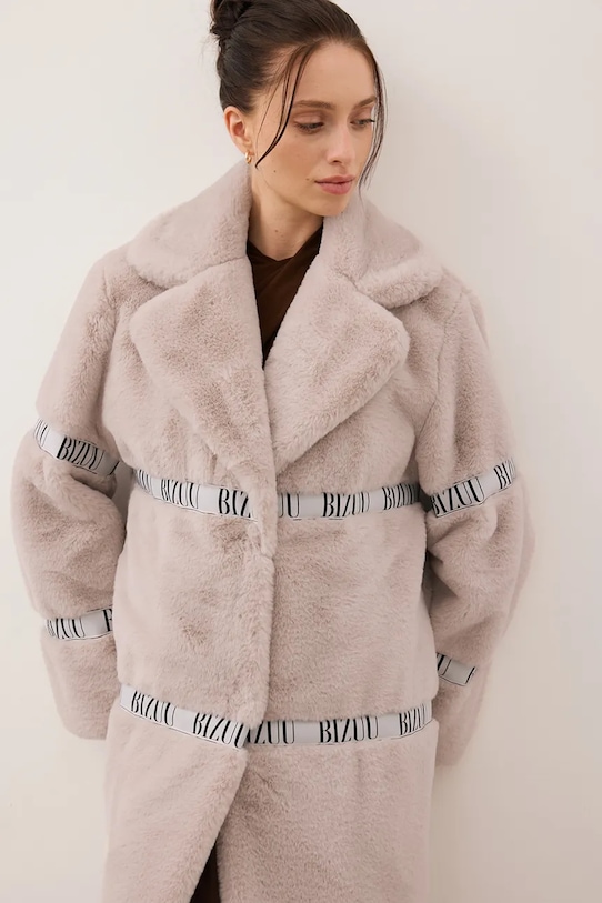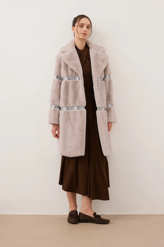 Пальто из коллекции Bizuu. Модель без подкладки, выполнена из искусственного меха.
