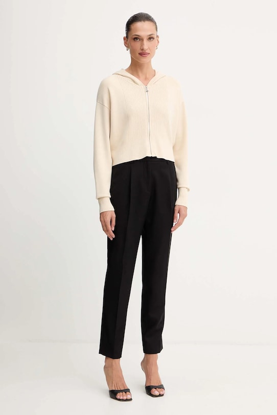 Этот кардиган из коллекции Patrizia Pepe выполнен из эластичного трикотажа средней плотности. Он изготовлен из исключительно комфортного материала с высоким содержанием вискозы. - Модель из линейки Go Green, изготовленная из волокон, полученных с использованием экологичных производственных процессов, что снижает их воздействие на окружающую среду. - Свободный крой, обеспечивающий полную свободу движений. - Крой рукава со спущенной линией плеча не ограничивает подвижность. - Застежка-молния. - Модель с капюшоном. - Длина рукава (от капюшона): 73 см. - Длина: 46 см. - Ширина под мышками: 52 см. - Размеры указаны для размера: 36.