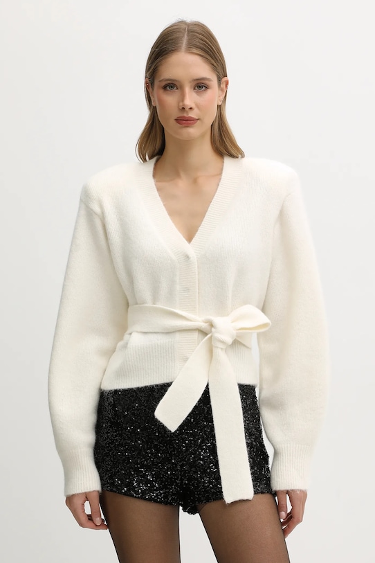 Этот кардиган из коллекции Rotate выполнен из тонкого эластичного трикотажа. Он дополнен декоративной лентой, которую можно носить как ожерелье или пояс. - B Corporation - это сертификация, которая выдается компаниям, которые соответствуют самым высоким стандартам подтвержденной социальной и экологической эффективности, а также прозрачности для общественности для достижения баланса между прибылью и целями. - Свободный крой, обеспечивающий полную свободу движений. - Длинный рукав. - Крой рукава со спущенной линией плеча не ограничивает подвижность. - Подплечники крепятся с помощью кнопок. - Рукава и нижний край отделаны удобными эластичными манжетами. - Удобная застежка-кнопка позволяет легко надевать и снимать. - Длина рукава (от горловины): 76 см. - Длина: 53 см. - Ширина под мышками: 55 см. - Размеры указаны для размера: S.