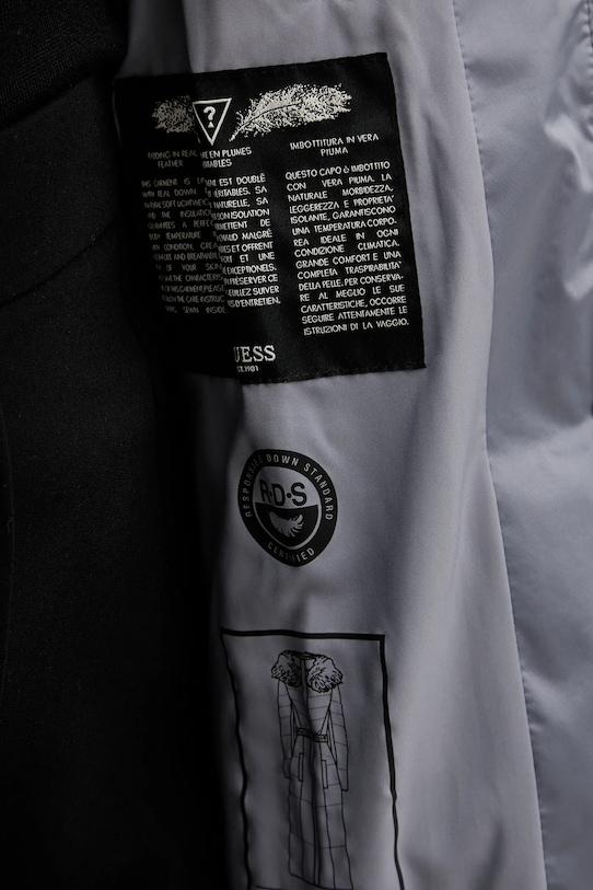 Пуховик из коллекции Guess. Эта утеплённая модель выполнена из стёганого материала. - Изделие сертифицировано RDS, что гарантирует ответственный подход к выбору материалов. - Утепленная модель с подкладкой. - Наполнитель - натуральный пух и перья. - Водонепроницаемая и ветрозащитная модель. - Гидрофобная пропитка DWR (Durable Water Repellentency) обеспечивает водонепроницаемость ткани. Этот метод позволяет воде собираться в капли на поверхности ткани и скатываться, не впитываясь. - Застегивается на двухстороннюю молнию и кнопки. - Высокий воротник и съемный капюшон обеспечивают дополнительную защиту от холода. - Капюшон со съемным искусственным мехом. - Два боковых кармана с застежкой на кнопку. - Рукава отделаны удобными эластичными манжетами. - Пояс на талии корректирует фигуру и еще больше подчеркивает талию. - Длина рукава: 61 см. - Ширина под мышками: 49 см. - Ширина плеч: 40 см. - Длина: 111 см.