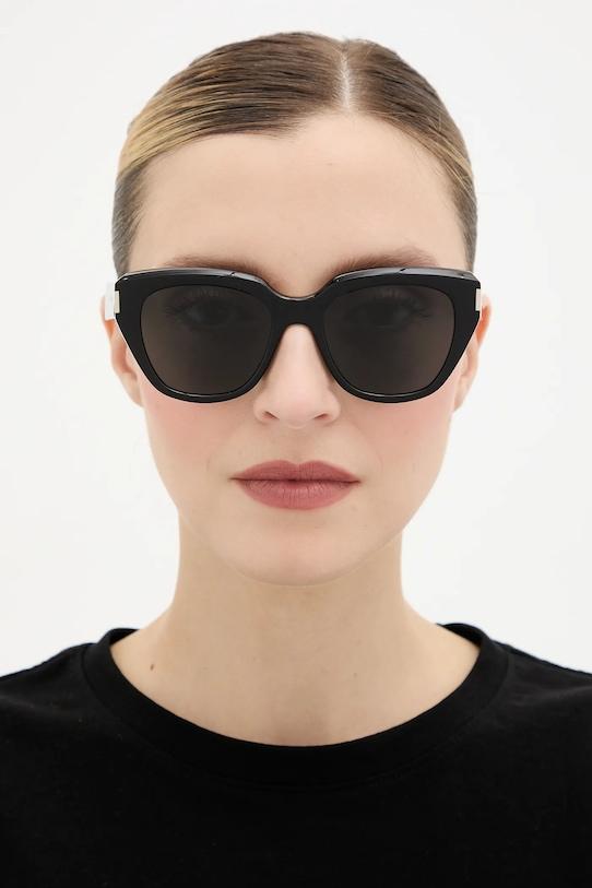 Солнцезащитные очки из коллекции Saint Laurent. Модель с гладкими линзами и пластиковой оправой. - Категория 3 (пропускает 8–18% света) - самая распространённая и универсальная категория затемняющих фильтров. Очки категории 3 идеально подходят для повседневного использования в солнечные дни и для отдыха в жарких странах. - УФ-фильтр защищает чувствительную радужную оболочку от UVA- и UVB-излучения. - В комплект модели входят чехол и салфетка для протирки очков. - Ширина рамы: 140 мм. - Ширина линзы: 50 мм. - Размеры указаны для размера: 52.