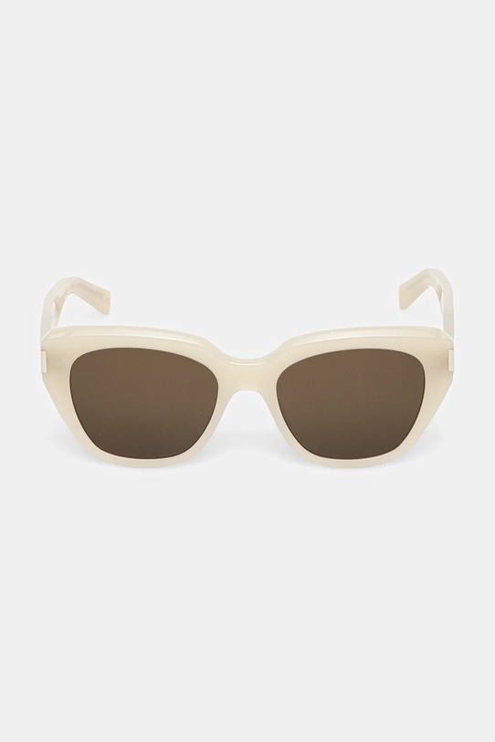 Солнцезащитные очки из коллекции Saint Laurent. Модель с гладкими линзами и пластиковой оправой. - Категория 3 (пропускает 8–18% света) - самая распространённая и универсальная категория затемняющих фильтров. Очки категории 3 идеально подходят для повседневного использования в солнечные дни и для отдыха в жарких странах. - УФ-фильтр защищает чувствительную радужную оболочку от UVA- и UVB-излучения. - В комплект модели входят чехол и салфетка для протирки очков. - Ширина рамы: 140 мм. - Ширина линзы: 50 мм. - Размеры указаны для размера: 52.