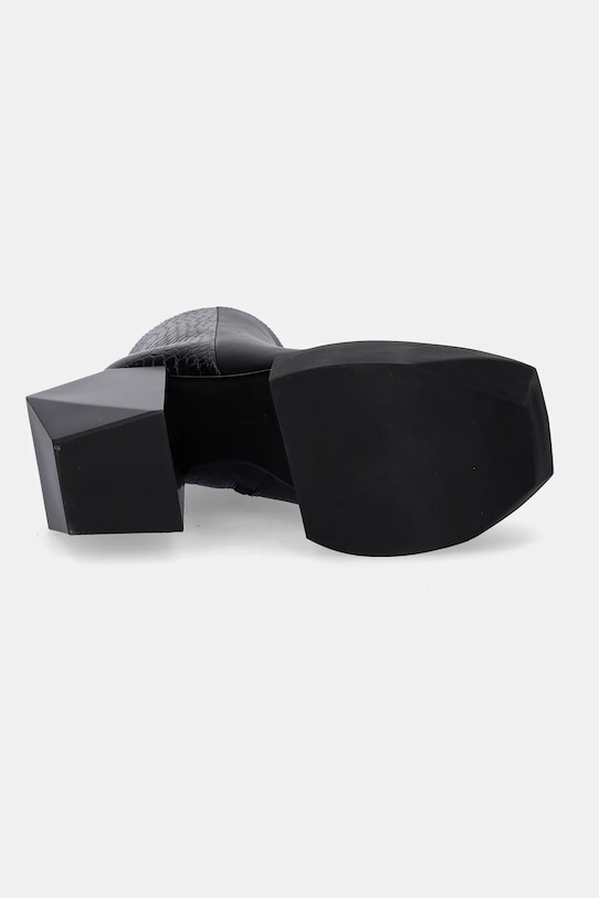 Ботильоны из коллекции United Nude, выполненные из натуральной кожи. Благодаря кожаной подкладке, эта модель обеспечивает комфортную посадку стопы, предотвращая натирание, потертости и появление неприятного запаха. - Модель с устойчивым каблуком. - Резиновая подошва прочная и устойчивая к повреждениям. - Удобная застежка-молния сбоку позволяет легко надевать и снимать. - Круглый, слегка утолщенный носок. - Входящий в комплект тканевый чехол защищает изделие от пыли. - Жесткий задник стабилизирует пятку и удерживает ногу в обуви, не давая ей выскальзывать во время движения. - Высота каблука: 13 см. - Длина вставки: 24 см. - Размеры указаны для размера: 37.