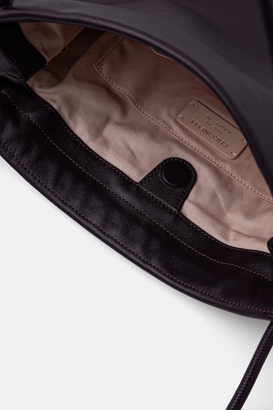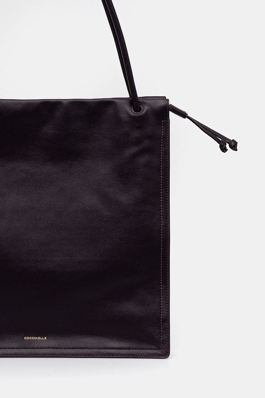 Большая сумка из коллекции Coccinelle. Модель на молнии из натуральной кожи. - Отделение затягивается шнурками и застегивается на магнит. - Три внутренних накладных кармана. - Модель на подкладке. - Вмещает формат А4. - Длинные ручки для удобной переноски в руке или на плече. - Входящий в комплект тканевый чехол защищает изделие от пыли. - Глубина: 11 см. - Высота: 35,5 см. - Ширина у основания: 37 см.