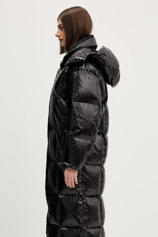 - Высокий воротник и съемный капюшон обеспечивают дополнительную защиту от холода.
