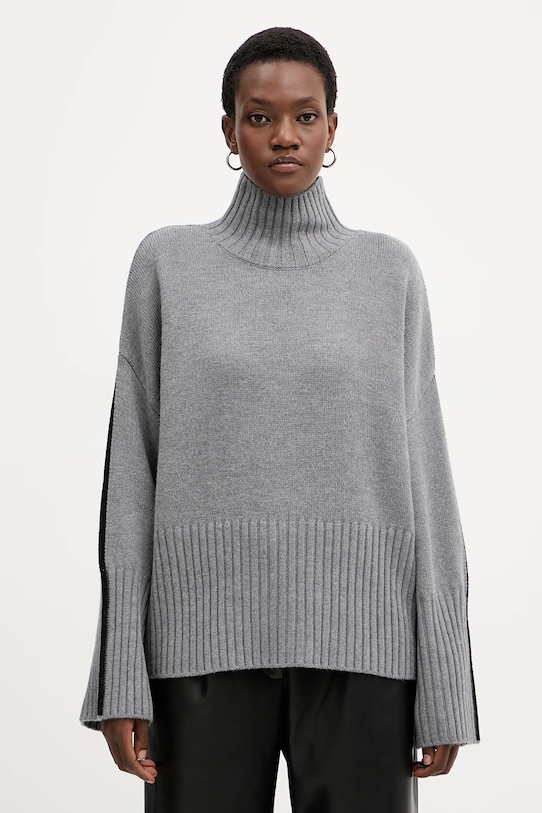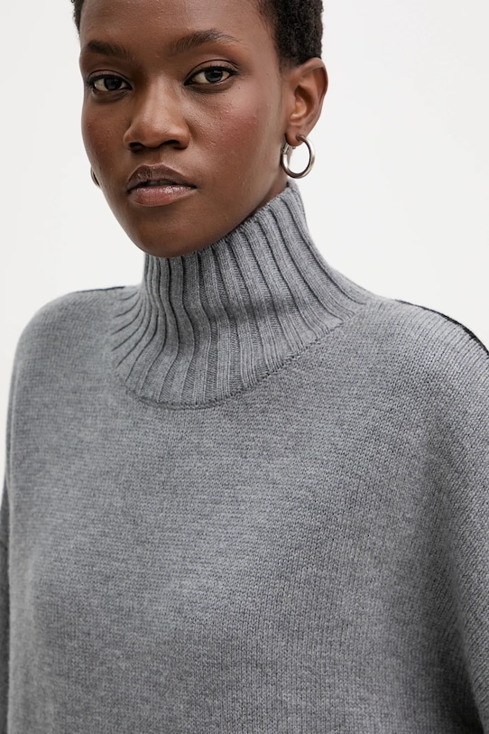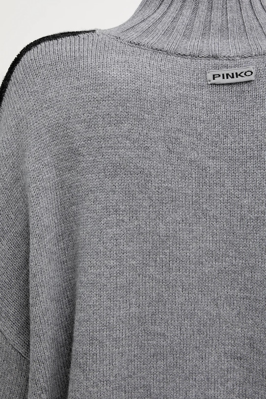 Этот свитер из коллекции Pinko выполнен из гладкого трикотажа. Высокие терморегулирующие свойства шерсти позволяют согреться в холод и охладиться в жару. - Свободный крой, обеспечивающий полную свободу движений. - Модель с высоким воротом. - Крой рукава со спущенной линией плеча не ограничивает подвижность. - Тонкий, эластичный трикотаж. - Отделка ребер. - Длина рукава (от горловины): 80 см. - Длина: 63 см. - Ширина под мышками: 68 см. - Размеры указаны для размера: S.