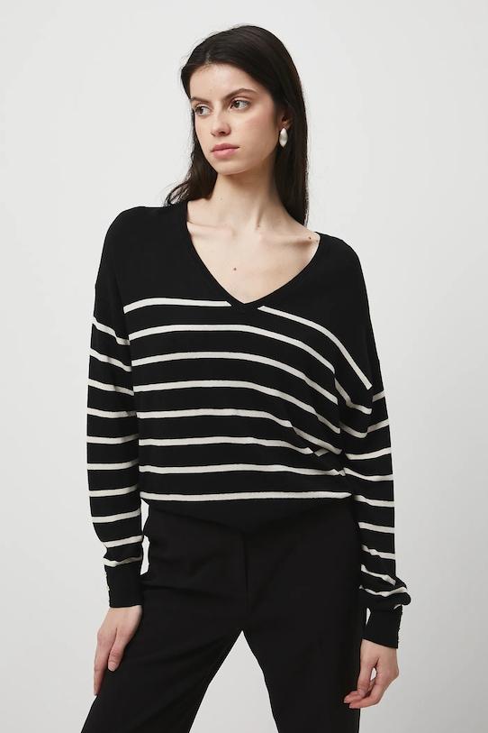 Свитер из коллекции Medicine. Острый вырез и узорчатый трикотаж.