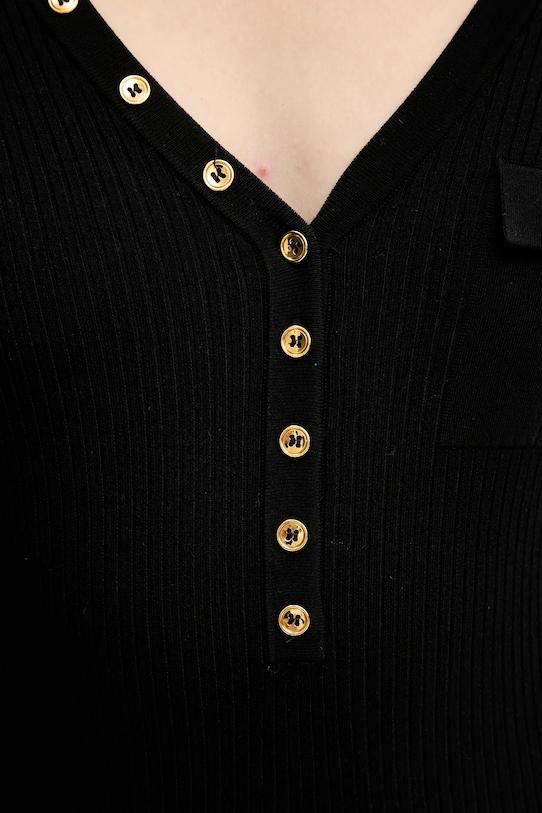 Это платье из коллекции Elisabetta Franchi выполнено из гладкого трикотажа. Высокоэластичный материал обеспечивает полную свободу движений. - Приталенный крой, подчеркивающий силуэт. - Модель выполнена из трикотажного полотна в рубчик. - Острый вырез. - Тонкий, эластичный трикотаж. - Длина рукава: 58 см. - Длина: 100 см. - Ширина под мышками: 36 см. - Ширина талии: 27 см. - Ширина бедер: 31 см. - Размеры указаны для размера: 36.