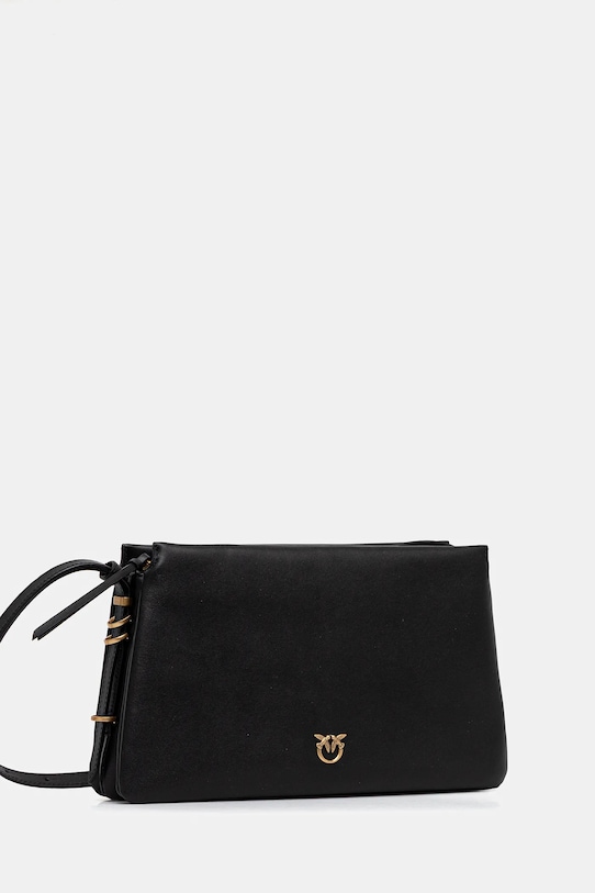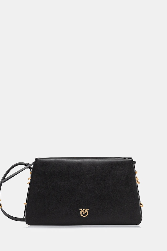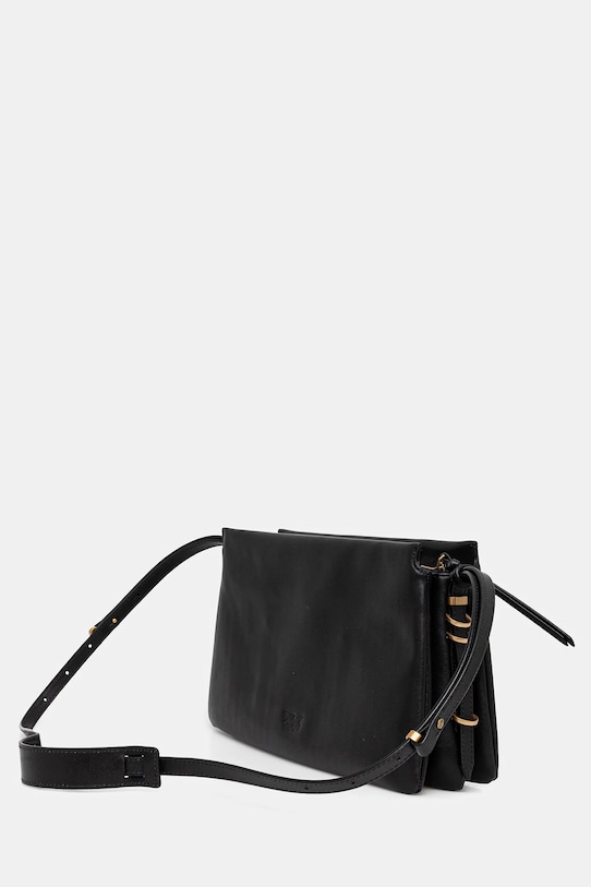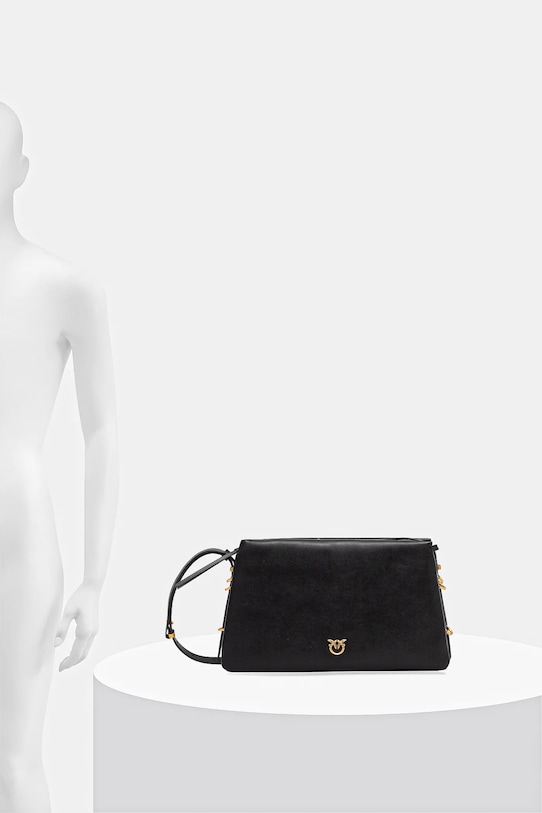 Сумка среднего размера из коллекции Pinko. Модель на молнии, выполнена из натуральной кожи. - Подлинность товара можно проверить только с помощью RFID-метки, вшитой внутрь сумки. Если поднести телефон к вышитым на задней стороне сумки птицам, на экране смартфона появится окно, позволяющее начать процесс проверки и подтвердить подлинность товара. - Имеет три отделения: одно на молнии, два на магнитной застежке. - Не подходит для формата А4. - Входящий в комплект тканевый чехол защищает изделие от пыли. - Внутреннее отделение для карт. - Несъемный, регулируемый ремешок. - Глубина: 10 см. - Высота: 19,5 см. - Ширина у основания: 33 см. - Минимальная длина ремешка: 89 см. - Максимальная длина ремня: 116 см.