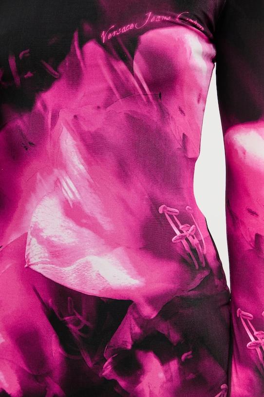 Это платье из коллекции Versace Jeans Couture выполнено из тонкого эластичного трикотажа. Модель выполнена из исключительно комфортного материала с высоким содержанием вискозы. - Приталенный крой, подчеркивающий силуэт. - Классический круглый вырез. - Модель на подкладке. - Длина рукава: 62 см. - Длина: 107 см. - Ширина под мышками: 40 см. - Ширина талии: 32 см. - Размеры указаны для размера: 38.