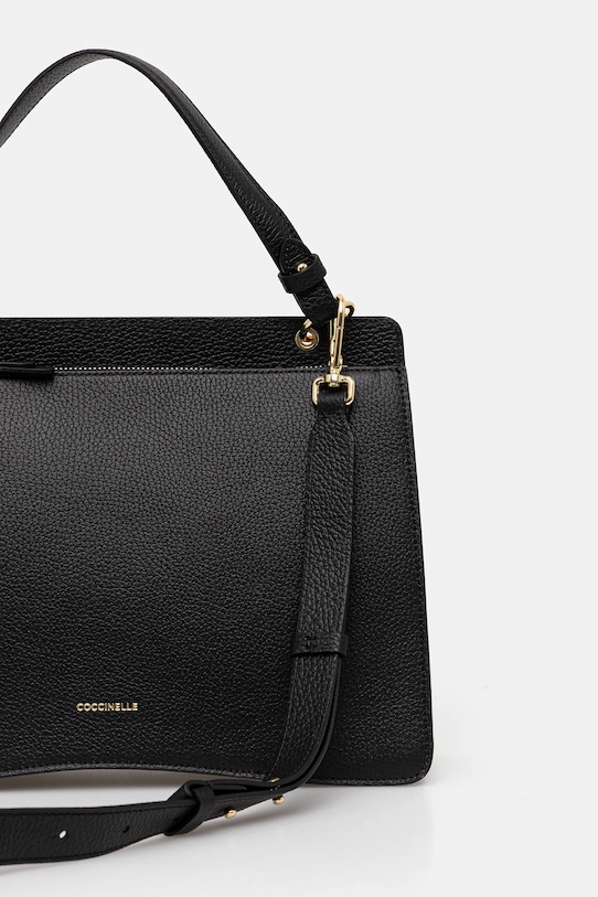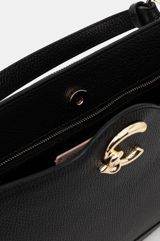 Небольшая сумочка из коллекции Coccinelle. Модель на молнии выполнена из натуральной кожи. Материал плотный и хорошо держит форму. - Входящий в комплект тканевый чехол защищает изделие от пыли. - Имеет два отделения, одно из которых застегивается на магнит. - Дополнительные внутренние карманы позволяют безопасно хранить мелкие предметы. - Усиленное дно сумки позволяет изделию долго сохранять форму. - Сумка для ношения в руке или на плече. - Съемный регулируемый ремешок позволяет индивидуально подогнать посадку. - Не подходит для формата А4. - Модель на подкладке. - Количество внутренних карманов на молнии: 1. - Количество внутренних накладных карманов: 2. - Длина ручки: 38 см. - Минимальная длина ремня: 90 см. - Максимальная длина ремня: 108 см. - Глубина: 10 см. - Высота: 25 см. - Ширина у основания: 33 см.