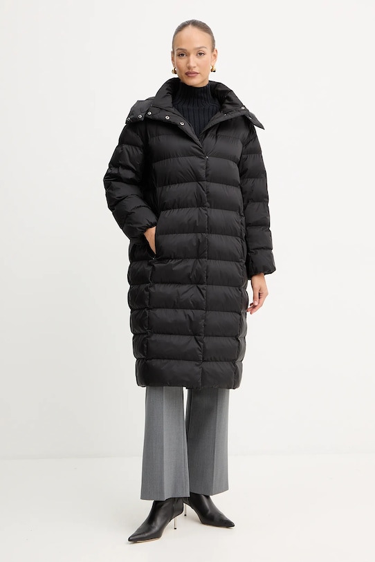 - Высокий воротник и съемный капюшон обеспечивают дополнительную защиту от холода.
