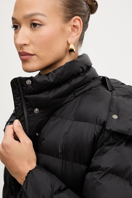 Куртка из коллекции MM. Утеплённая модель выполнена из гладкой ткани. Поднятый воротник обеспечивает дополнительную защиту от холода.