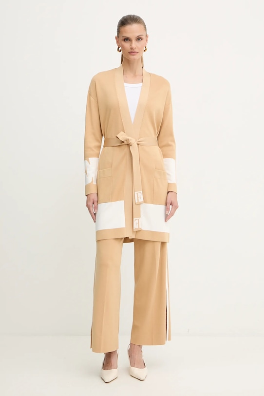 Этот кардиган из коллекции Elisabetta Franchi выполнен из узорчатого трикотажа. Он изготовлен из исключительно комфортного материала с высоким содержанием вискозы. - Большой размер. - Длинный рукав. - Расстегивающаяся модель. - Накладные карманы. - Тонкий, эластичный трикотаж. - Длина рукава (от горловины): 77 см. - Длина: 90 см. - Ширина под мышками: 58 см. - Размеры указаны для размера: 36.