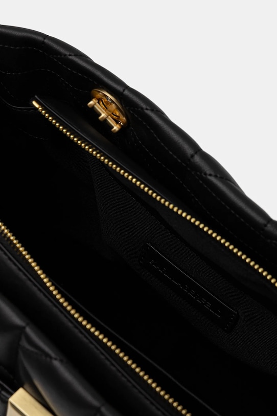 Сумка среднего размера из коллекции Karl Lagerfeld. Застёжка-пряжка выполнена из комбинации натуральной кожи и текстиля. - Изделие содержит переработанные волокнистые материалы. - Входящий в комплект тканевый чехол защищает изделие от пыли. - Отделение на молнии. - Имеет два отделения. - Модель на подкладке. - Вмещает формат А4. - Функциональный передний карман обеспечивает быстрый доступ к необходимым вещам. - Длинные ручки для удобной переноски в руке или на плече. - Длина ручки: 60 см. - Глубина: 13 см. - Высота: 25 см. - Ширина у основания: 36 см.