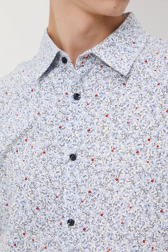 Эта рубашка из коллекции Medicine выполнена из узорчатой ткани и имеет классический, слегка жесткий воротник. - Приталенная рубашка облегает тело, естественно подчеркивая силуэт и обеспечивая комфорт. - Длинный рукав. - Манжеты на пуговицах. - Слегка усиленный классический воротник Kent. - Застежка на пуговицы. - Ткань с мелким рисунком. - Узор с растительным мотивом. - Окружность воротника: 45,5 см. - Длина рукава: 66,5 см. - Длина: 75 см. - Ширина груди: 54 см. - Ширина плеч: 47 см. - Размеры указаны для размера: M.