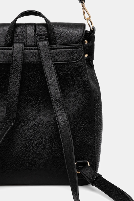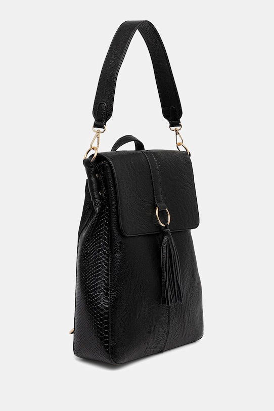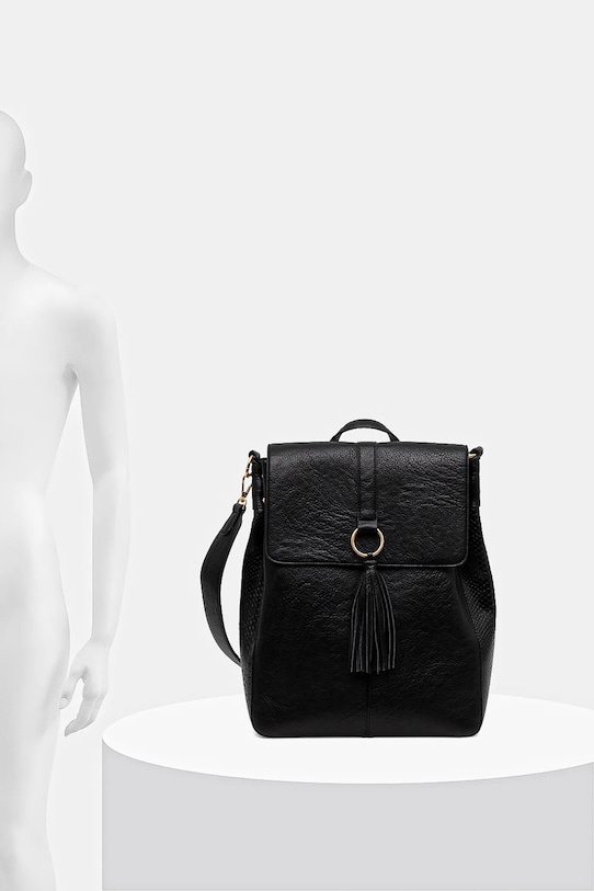 Рюкзак из коллекции «Medicine». Изготовлен из экокожи. - Модель оснащена прикрепляющимся ремешком, что позволяет носить ее как сумочку. - Рукоятка. - Клапан застегивается на магнит. - Имеет три отделения: два на магнитных застежках и одно на молнии. - Три внутренних кармана: один на молнии, два накладных. - Регулируемые, несъемные лямки. - Декоративные вставки с фактурой кожи крокодила. - Модель с декоративной кисточкой. - Модель на подкладке. - Вмещает формат А4. - Глубина: 9 см. - Высота: 37 см. - Ширина у основания: 28 см.