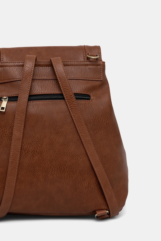 Рюкзак из коллекции «Medicine». Изготовлен из экокожи. - Модель оснащена прикрепляющимся ремешком, что позволяет носить ее как сумочку. - Клапан застегивается на магнит. - Кнопки по бокам для регулировки ширины. - Застежка-молния. - Внутренний карман на молнии. - Карман на молнии сзади. - Регулируемые, несъемные лямки. - Модель на подкладке. - Вмещает формат А4. - Глубина: 14 см. - Высота: 34 см. - Ширина у основания: 34 см.