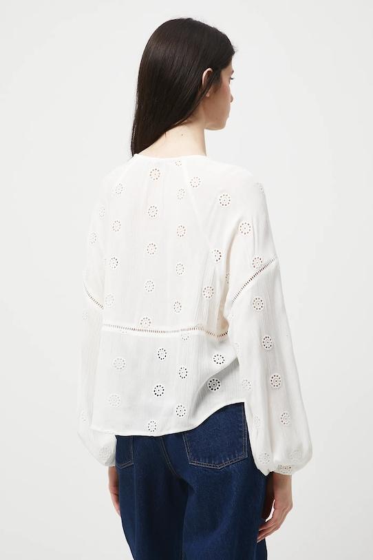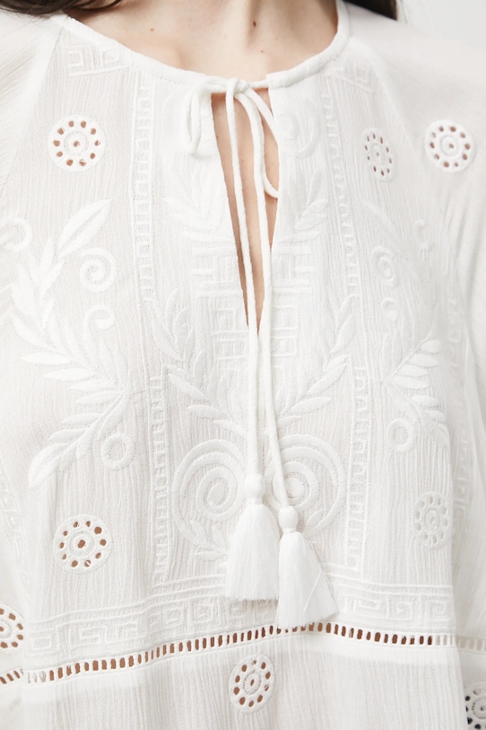 Эта блузка из коллекции Medicine выполнена из ткани с декоративной вышивкой. Имеет острый вырез горловины и завязывается на завязку. - Большой размер. - Длинные рукава реглан. - Рукава отделаны ребристыми манжетами. - Острый вырез с завязками. - Декоративные вставки. - Модель с декоративной вышивкой. - Вышивка с растительным мотивом. - Длина рукава: 73 см. - Длина: 60 см. - Ширина груди: 58 см. - Размеры указаны для размера: S.