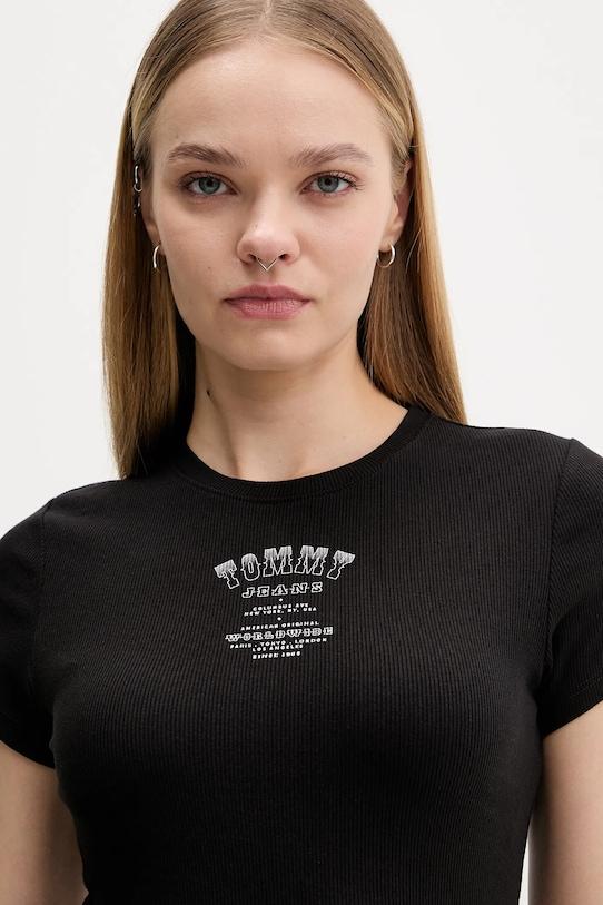 Эта футболка из коллекции Tommy Jeans выполнена из эластичного трикотажа в рубчик. Она изготовлена из дышащего материала с высоким содержанием хлопка. Модель частично изготовлена из хлопка, полученного в результате регенеративного земледелия, что позволяет фермерам синхронизироваться с природными ритмами. Такой подход к земледелию обеспечивает более длительный отдых и восстановление растений, что приводит к лучшему питанию сельскохозяйственных животных и оздоровлению почвы. - Приталенный крой, подчеркивающий силуэт. - Круглый ребристый вырез. - Короткие, прилегающие рукава. - Модель выполнена из трикотажного полотна в рубчик, которое отличается особой эластичностью и мягкостью, благодаря чему хорошо облегает тело и обеспечивает комфорт при носке. - Графический логотип бренда спереди. - Длина: 56 см. - Ширина под мышками: 38 см. - Размеры указаны для размера: S.