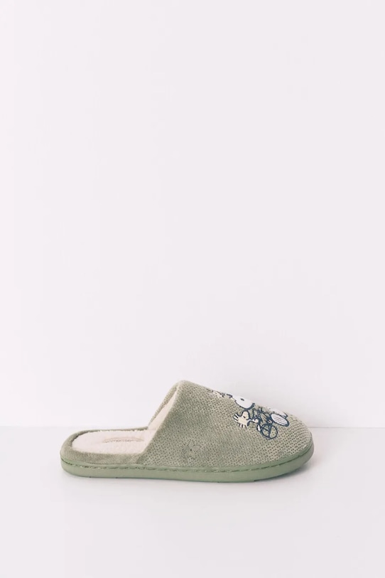 Тапочки из женской коллекции Secret, изготовленные из текстильного материала. Модель оснащена прочной и устойчивой к повреждениям резиновой подошвой. - Круглый, мягкий нос. - Текстильная внутренняя часть комфортна для ног и облегчает содержание обуви в чистоте. - Мягкая внутренняя отделка обеспечивает высокий комфорт использования и оптимальный тепловой комфорт. - Гибкая подошва обеспечивает высокий комфорт использования.
