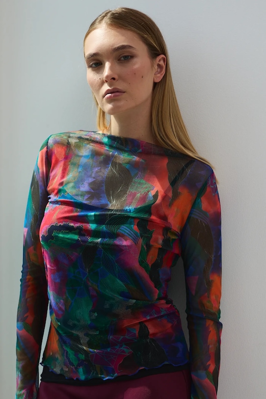 Лонгслив из специальной коллекции «Таинственный мир медицины». Изготовлен из узорчатого трикотажа.