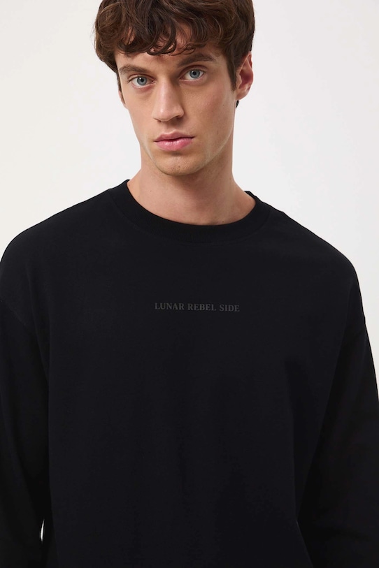 Лонгслив из коллекции Medicine. Изготовлен из принтованного хлопкового трикотажа. - Обычная посадка. - Длинный рукав. - Заниженная линия плеча. - Круглый вырез. - Отделка ребер. - Модель с принтом на спине. - Печать на лицевой стороне с надписью: Lunar rebel side. - Длина рукава (от горловины): 82,2 см. - Длина: 72 см. - Ширина груди: 57 см. - Размеры указаны для размера: M.
