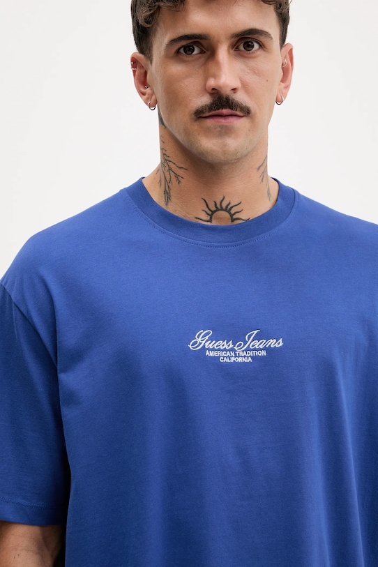 Хлопковая футболка Guess Jeans, синий