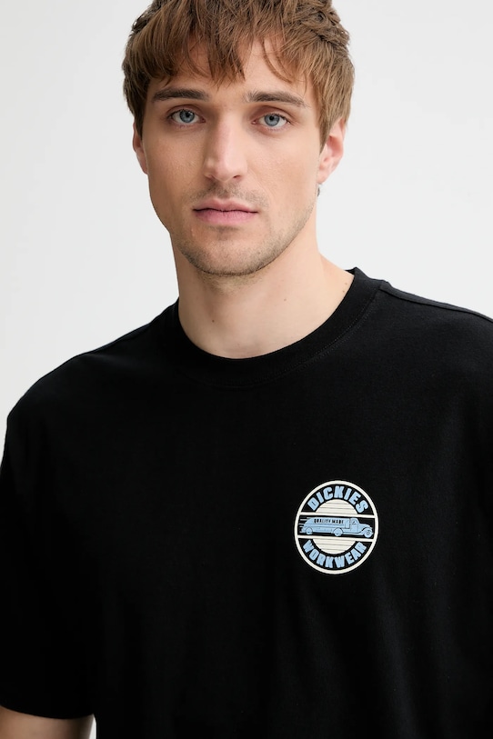 Эта футболка из коллекции Dickies выполнена из тонкой, эластичной ткани. Модель выполнена из исключительно комфортного хлопкового материала. - Обычная посадка. - Классический круглый вырез. - Плоские швы защищают кожу от натирания и раздражения и обеспечивают высокий уровень комфорта во время занятий спортом. - Модель с принтом на груди и спине. - Длина: 75 см. - Ширина под мышками: 58 см. - Размеры указаны для размера: L.