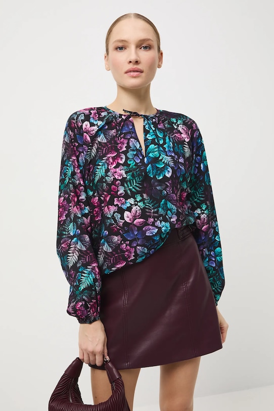 Эта блузка из коллекции Medicine выполнена из узорчатой ткани и имеет заостренный вырез с завязкой. - Обычная посадка. - Острый вырез с завязками. - Длинные рукава реглан. - Рукава отделаны резинкой. - Узорчатая ткань. - Узор с растительным мотивом. - Расположение узора может отличаться на каждом изделии. - Длина рукава (от горловины): 76,5 см. - Ширина груди: 54 см. - Длина: 63 см. - Размеры указаны для размера: S.