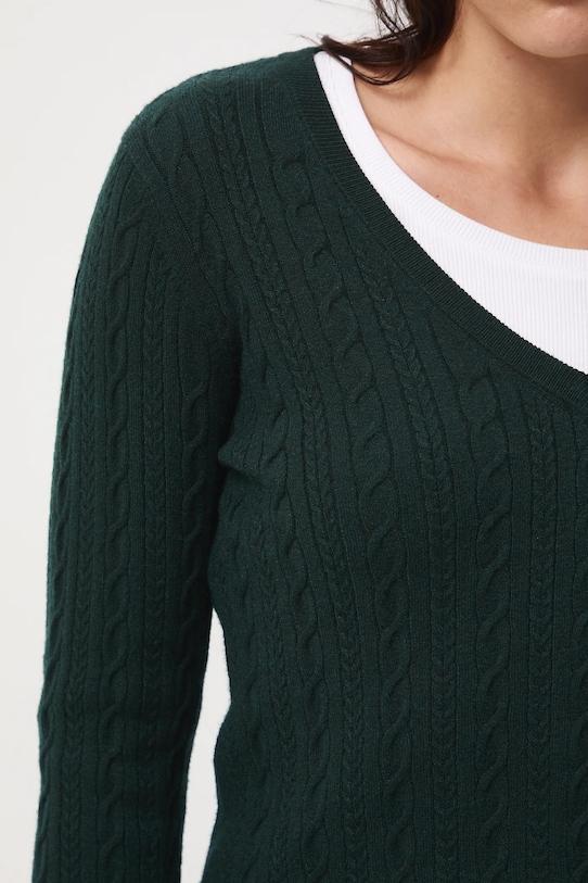 Свитер из коллекции Medicine. Отличается острым вырезом и фактурной трикотажной тканью. - Этот облегающий свитер плотно облегает тело и естественно подчёркивает силуэт. Подходит как для элегантных, так и для повседневных образов. - Длинный рукав. - Острый вырез. - Отделка ребер. - Плетение кос. - Длина рукава: 58,5 см. - Длина: 58 см. - Ширина груди: 42 см. - Размеры указаны для размера: S.