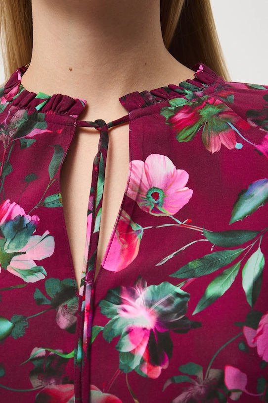 Эта блузка из коллекции Medicine выполнена из узорчатой ткани и имеет заостренный вырез с завязкой. - Обычная посадка. - Острый вырез с завязками. - Длинные рукава реглан. - Рукава отделаны резинкой. - Узорчатая ткань. - Узор с цветочным мотивом. - Длина рукава (от горловины): 93,2 см. - Ширина груди: 52 см. - Длина: 66 см. - Размеры указаны для размера: S.