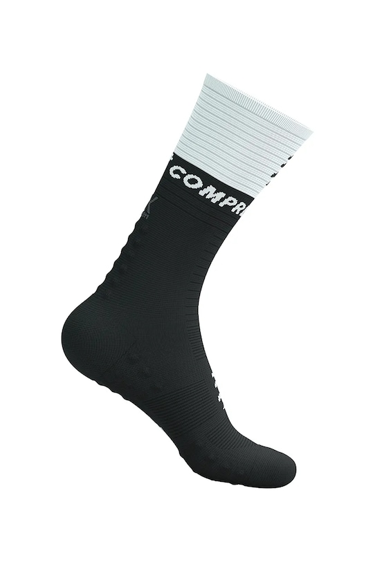 Длинные носки из коллекции Compressport. Изготовлены из эластичного материала, обеспечивающего полную свободу движений. Технология 3D.Dot поглощает удары, защищает чувствительные зоны, такие как ахиллово сухожилие, и обеспечивает микромассаж для улучшения кровотока. Она также обеспечивает отличную поддержку стопы внутри обуви, снижая риск перегрева и образования мозолей, вызванных чрезмерной активностью. - Эргономичный крой повышает комфорт использования во время активности. - Носки помогают снизить вибрацию мышц, что позволяет дольше поддерживать интенсивность упражнений и отодвигает усталость ног. - Ребристая отделка предотвращает соскальзывание носков.