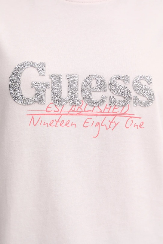 Эта футболка из коллекции Guess выполнена из тонкой, эластичной ткани. Эта модель выполнена из исключительно комфортного и дышащего материала, идеально подходящего для теплого времени года. Этот продукт частично изготовлен из сертифицированного органического хлопка, выращенного и собранного с растений, не содержащих ГМО, без использования удобрений и пестицидов. Процесс производства органического хлопка более экологичен, а изделия из него полезнее для здоровья. - Простой дизайн, не стесняющий движений. - Короткий рукав. - Классический круглый вырез. - Более длинная спина. - Модель с принтом и стразами. - Длина спереди: 58,5 см. - Длина спинки: 61,5 см. - Ширина под мышками: 50 см. - Размеры указаны для размера: S.
